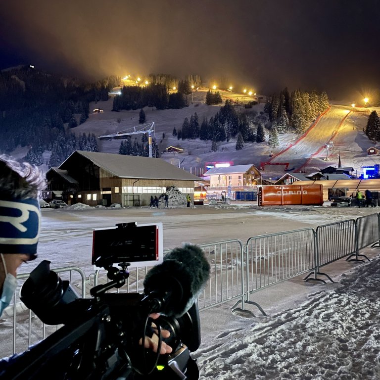 Dreharbeiten mit Willy Schranz - Skirennen Adelboden