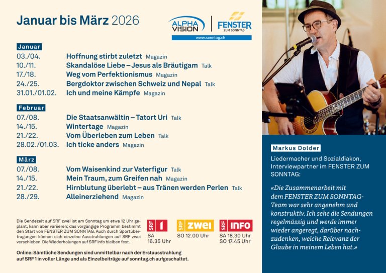 Mit SCHAUFENSTER sind Sie regelmässig und aus erster Hand über FENSTER ZUM SONNTAG informiert.